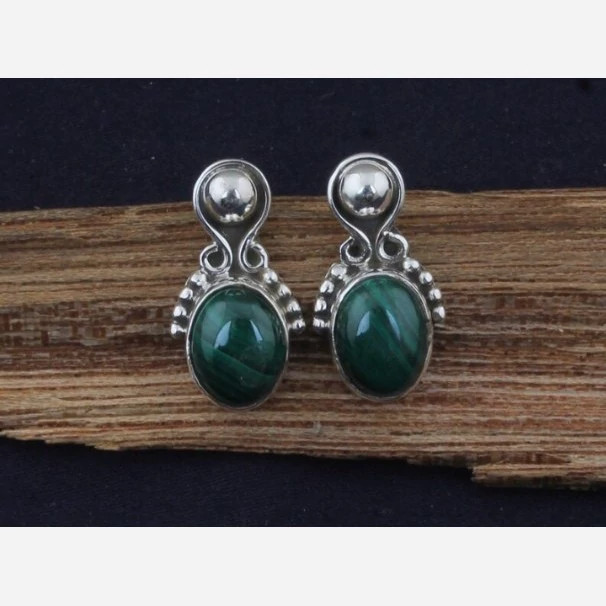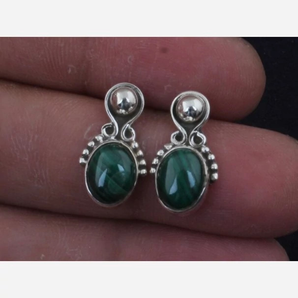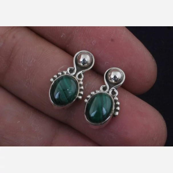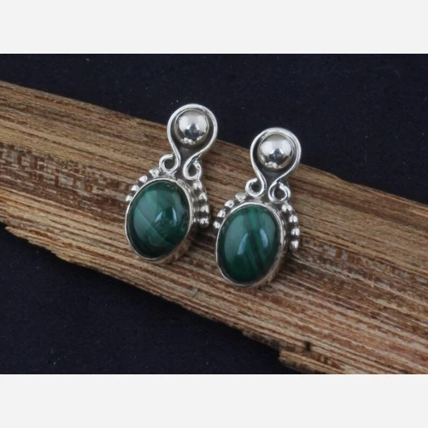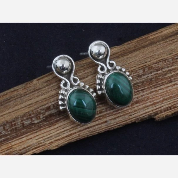 گوشواره مالاکیت طبیعی دست ساز نقره عیار 925