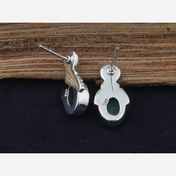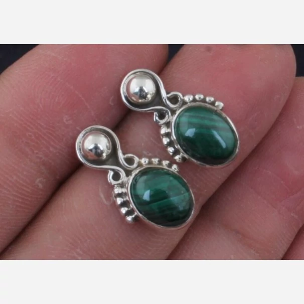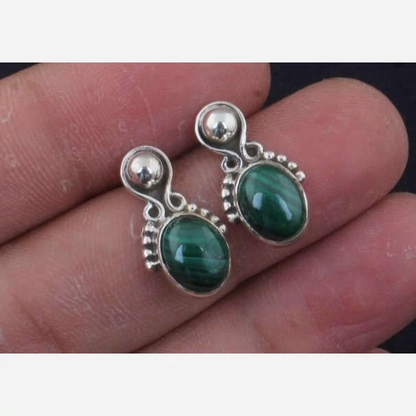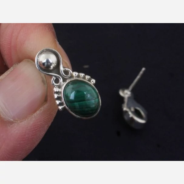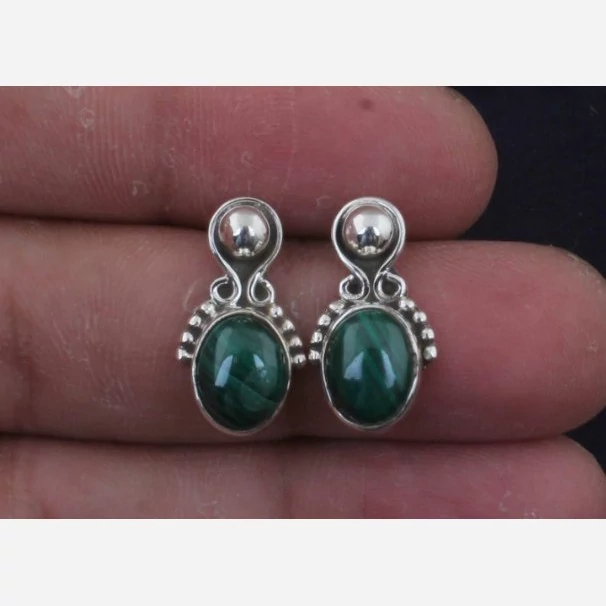 گوشواره مالاکیت طبیعی دست ساز نقره عیار 925