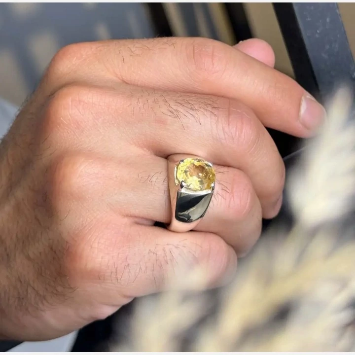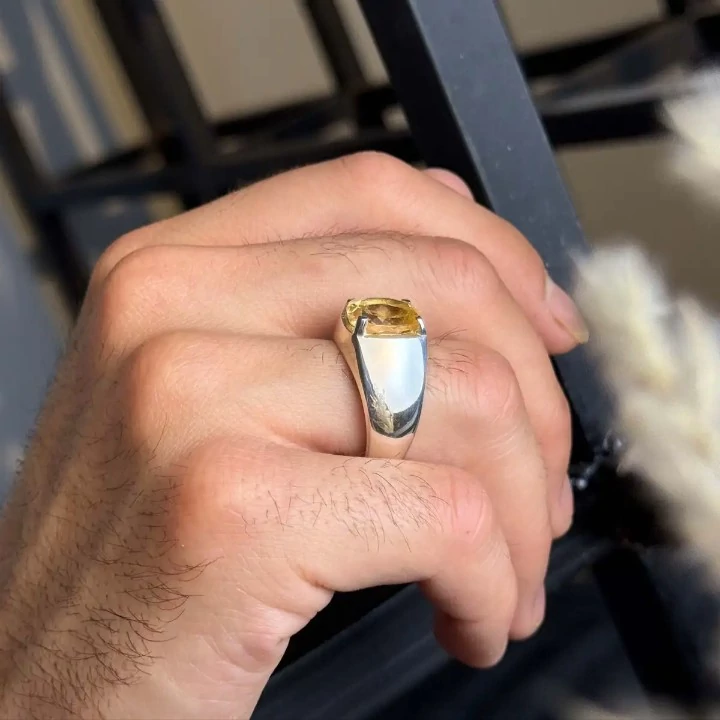 انگشتر سیترین معدنی مردانه رکاب ساده بسیار شیک