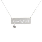 پلاک نقره مدل نوشته توخالی جان من است او داخل قاب مستطیل از جنس نقره به همراه با زنجیر نقره عیار 925