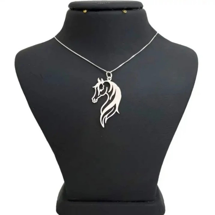 پلاک نقره طرح اسب به همراه زنجیر نقره عیار 925 طرح بسیار زیبا مناسب خانم ها مناسب هدیه به عزیزانتان وزن حدودی گردنبند ۵ گرم کار بسیار زیبا جدید و خاص ارسال به تمام نقاط کشور
