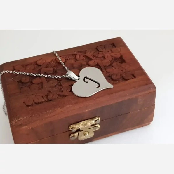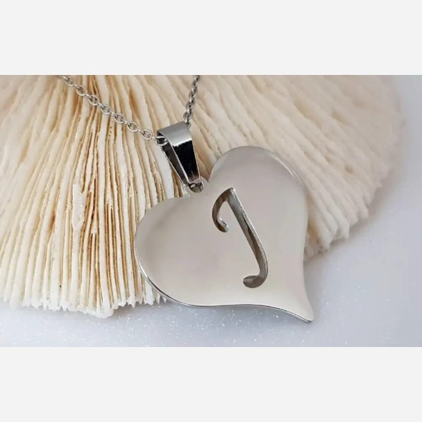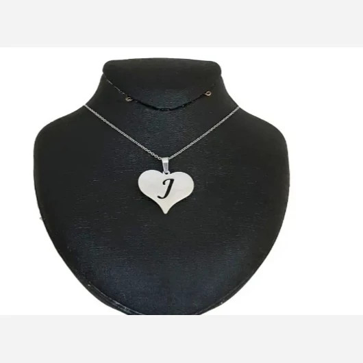 پلاک شکل قلب حرف J جی توخالی به همراه با زنجیر نقره عیار 925