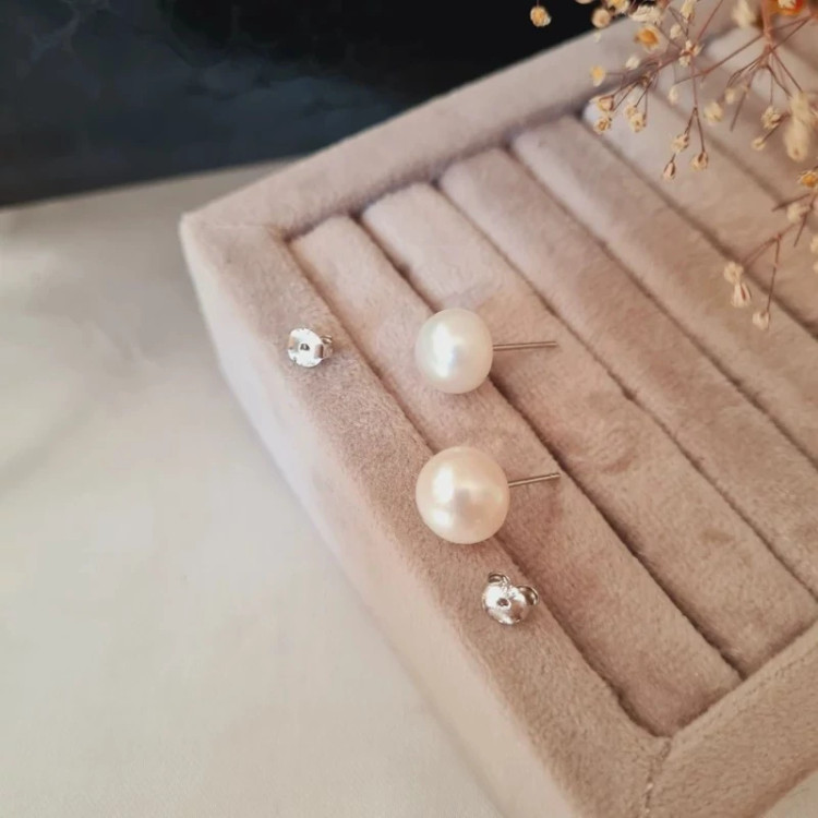 گوشواره نقره عیار 925 میخی کارشده با مروارید طبیعی پرورشی بسیار زیبا و ساده و شیک مناسب خانم ها و دخترخانم ها ارسال سریع به کل کشور