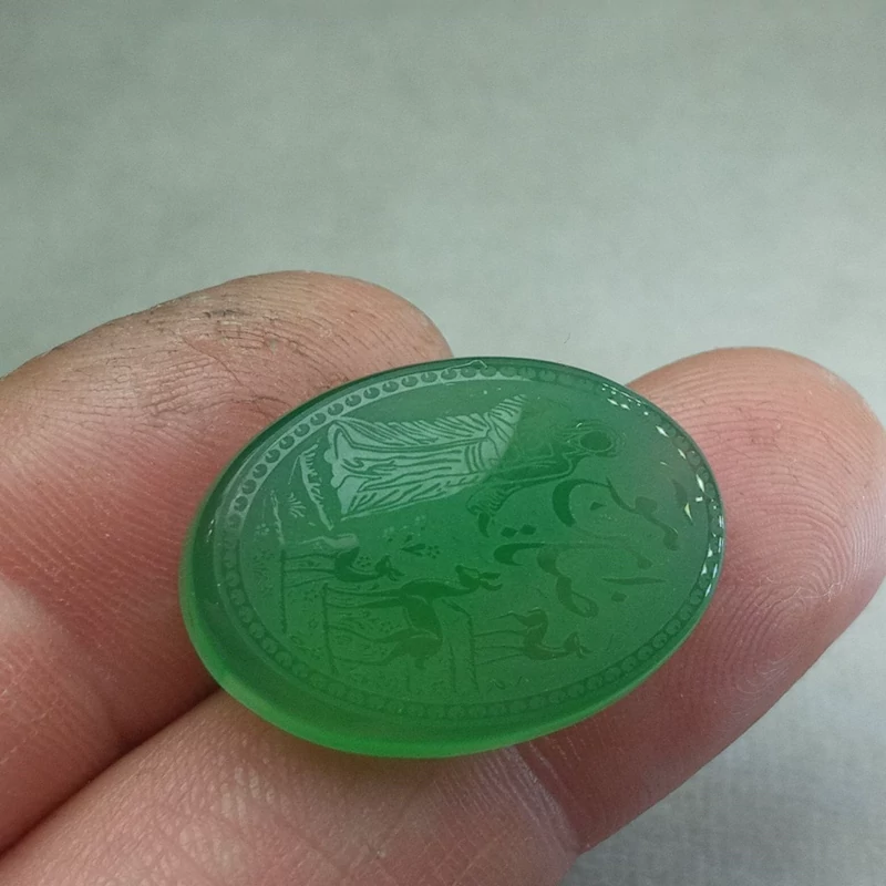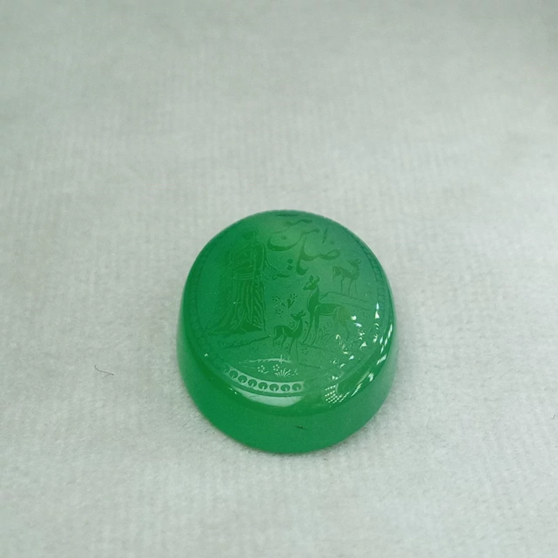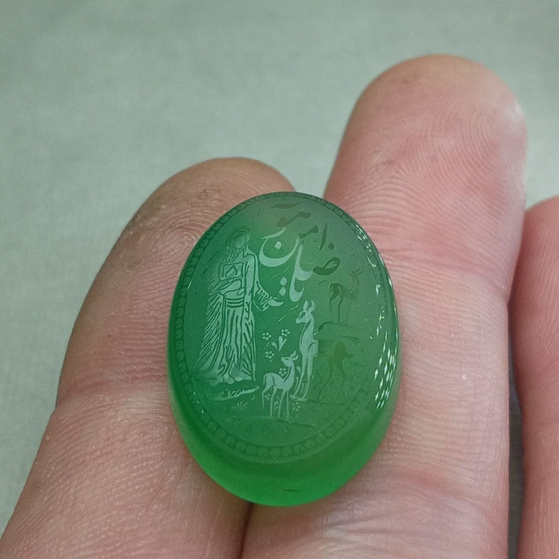 عقیق سبز حکاکی شده یا ضامن آهو