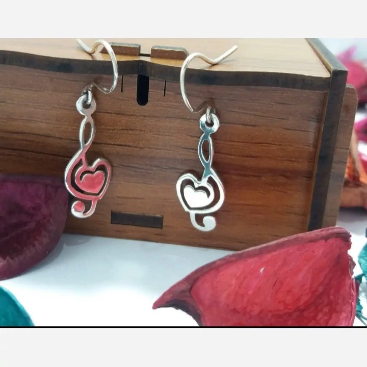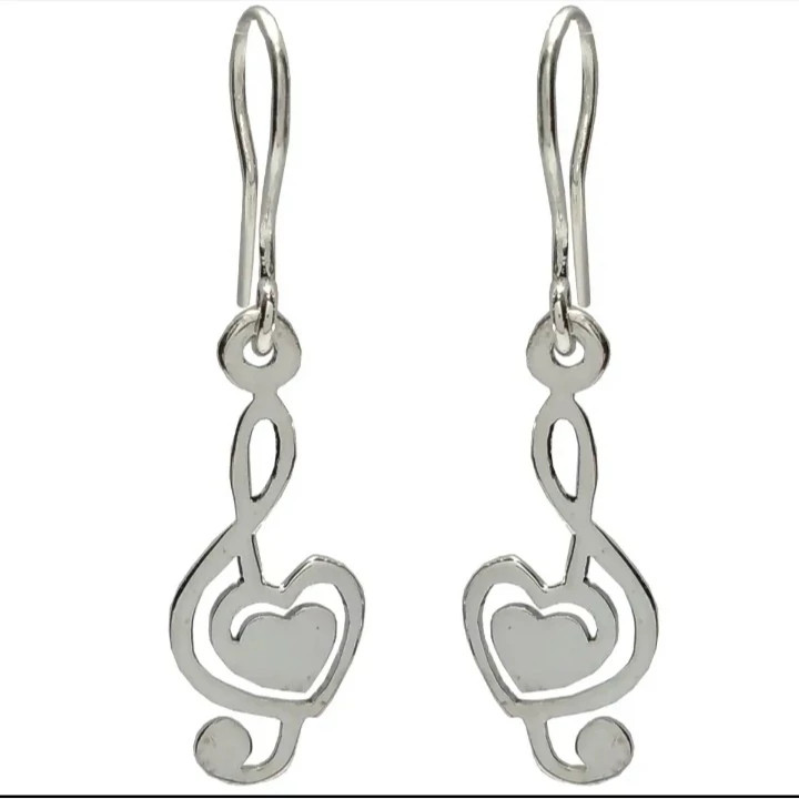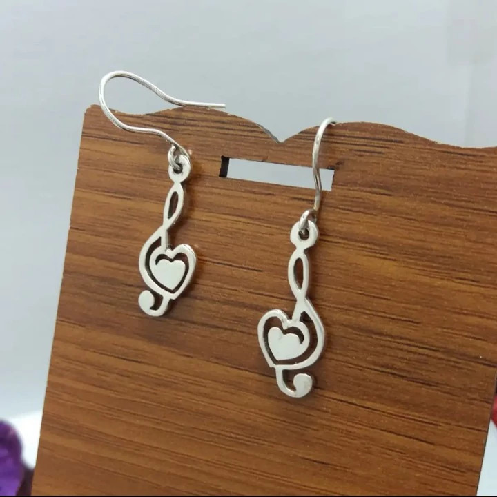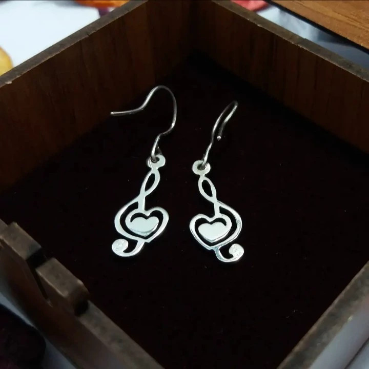 گوشواره نقره زنانه مدل نت موسیقی و قلب