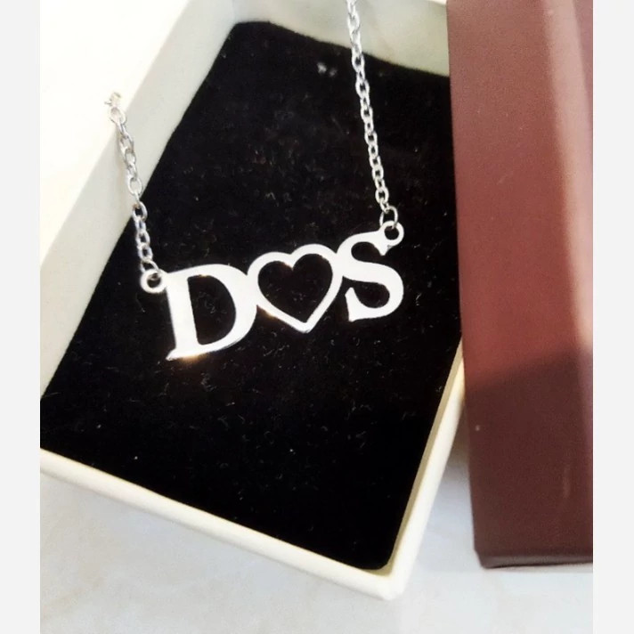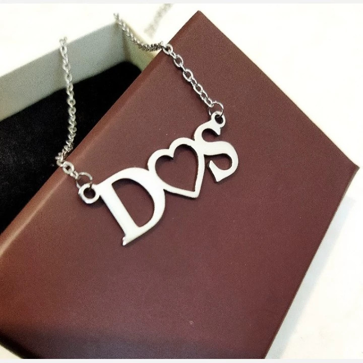 گردن بند نقره زنانه طرح نوشته دو حرف انگلیسی و قلب بین آنها