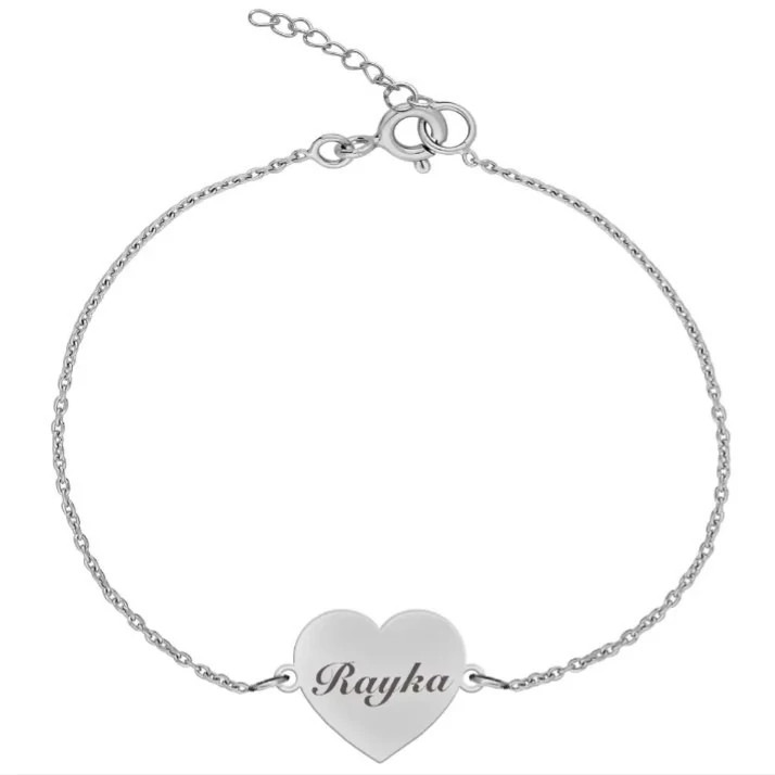طرح لیزری حکاکی شده اسم رایکا برروی قلب و زنجیر نقره