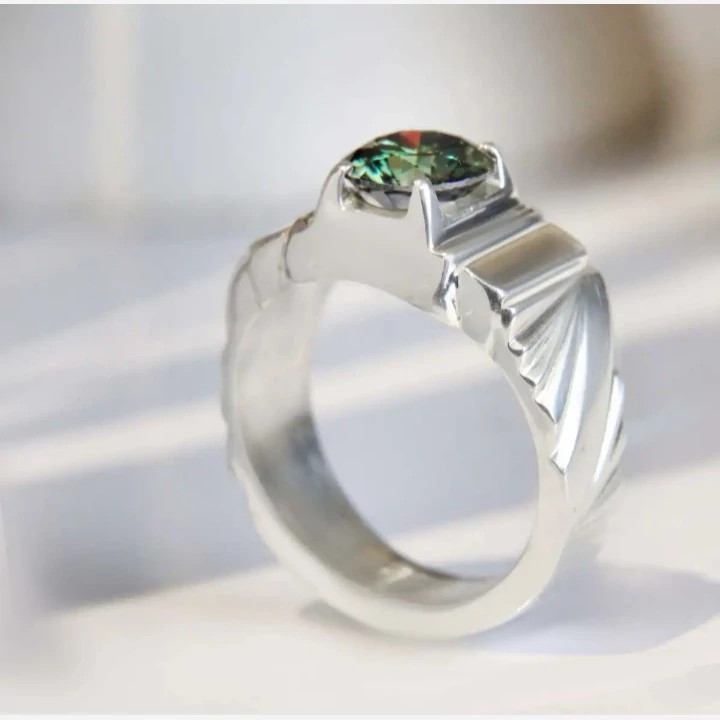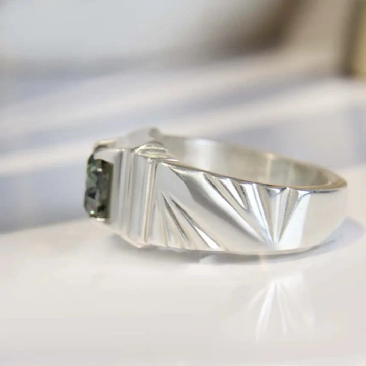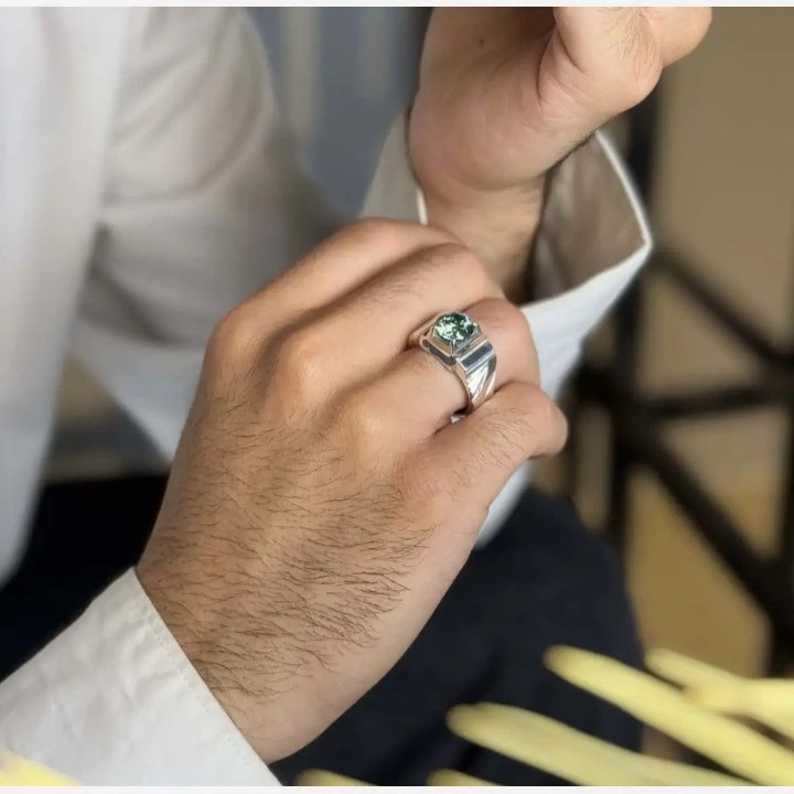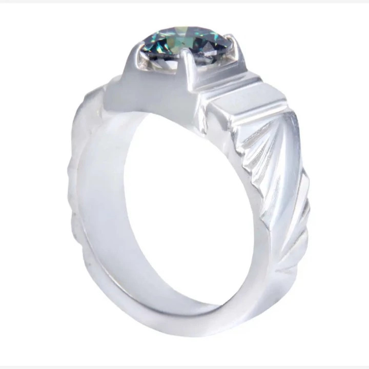 انگشتر موزانایت الماس روسی مردانه رکاب طرح دار بسیار شیک