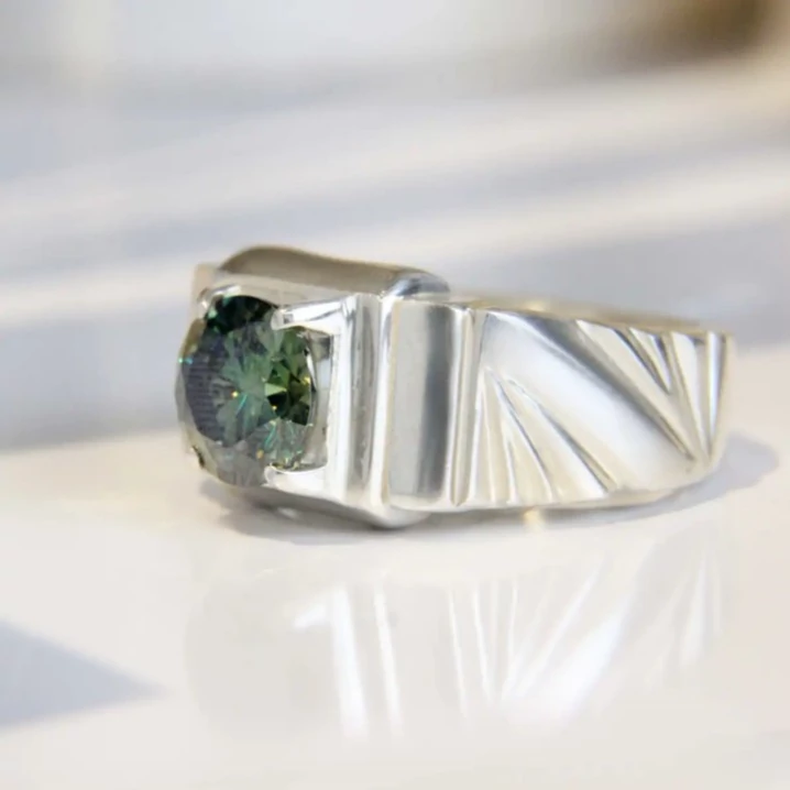 انگشتر موزانایت الماس روسی مردانه رکاب طرح دار بسیار شیک