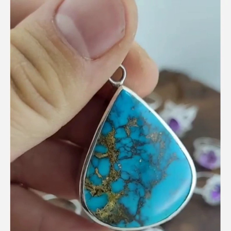 نگین کارشده در این گردن بند فیروزه نیشابور تراش اشکی میباشد