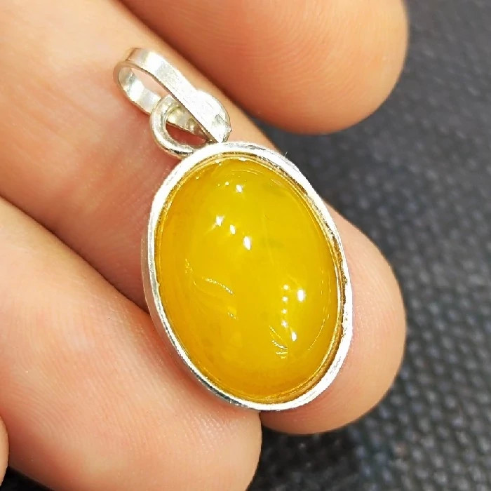 پلاک گردنی نقره کارشده با نگین عقیق زرد معدنی