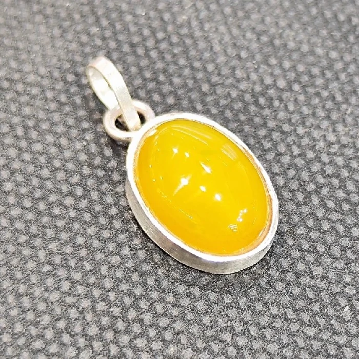 پلاک گردنی نقره کارشده با نگین عقیق زرد معدنی