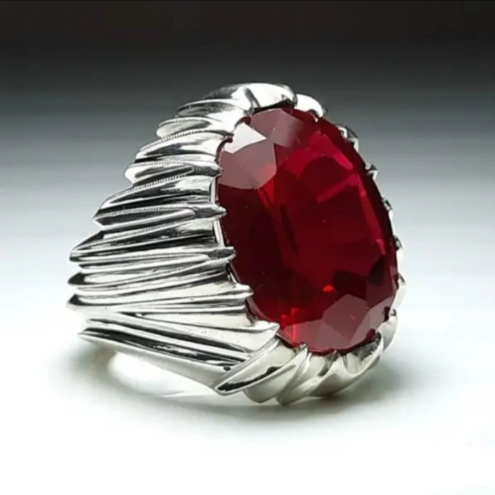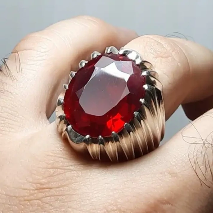 انگشتر یاقوت شمش صنعتی سنتاتیک مردانه بسیار چشمگیر و زیبا