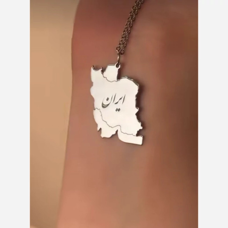 گردن بند مدل نقشه ایران عزیز و حکاکی شده نام وطن و زنجیر دیپلمات