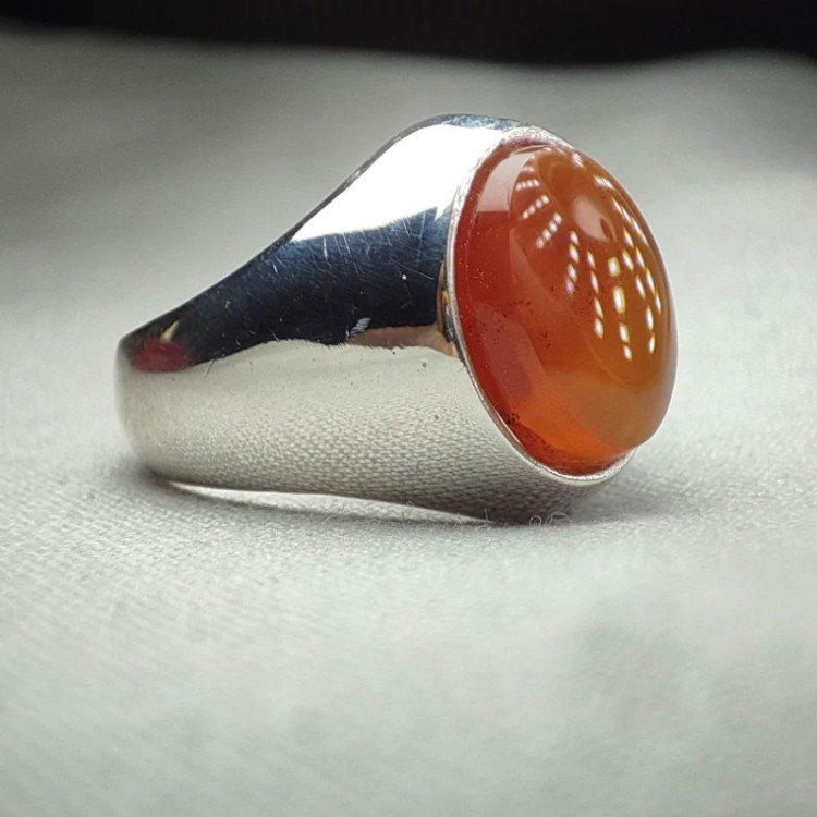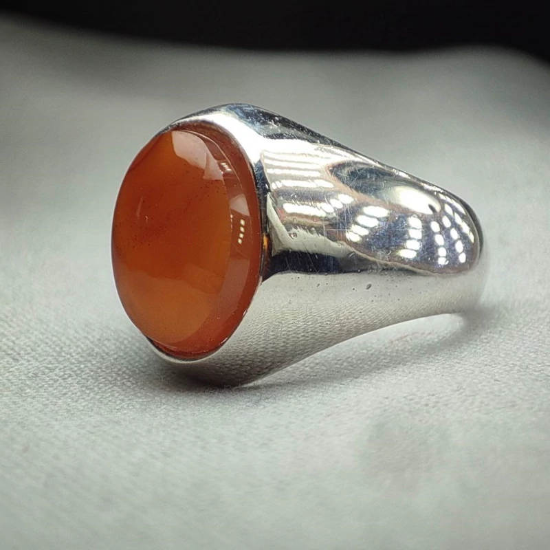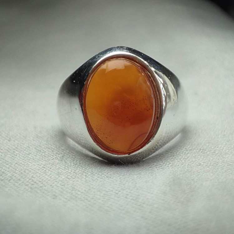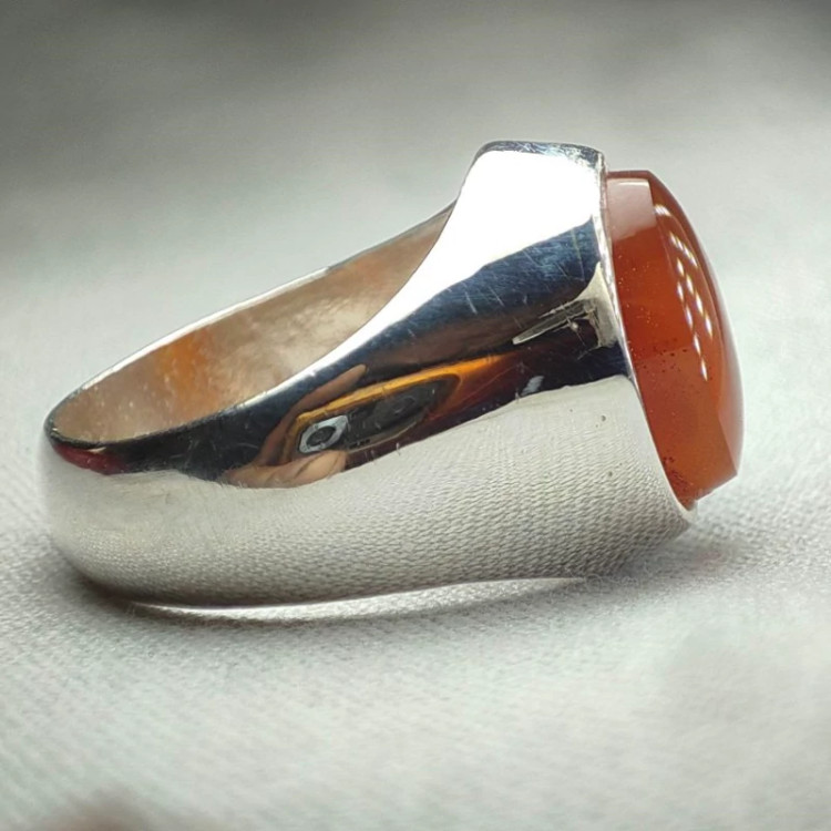 انگشتر نقره مردانه عیار بالا نگین عقیق یمنی پرتقالی ساده و شیک