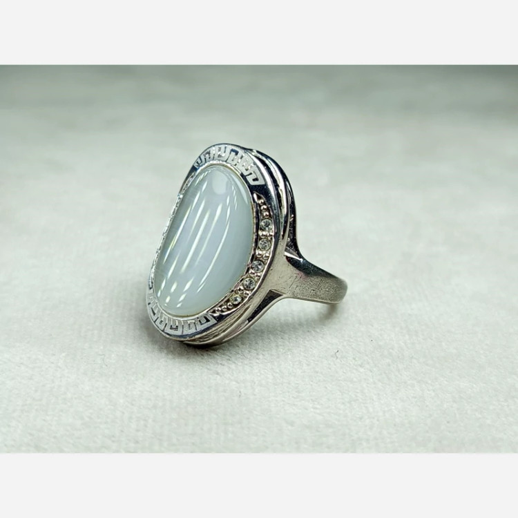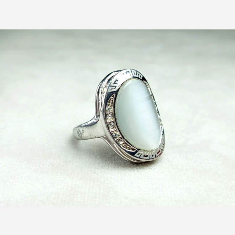 انگشتر استیل زنانه سایز 54 کارشده با نگین چشم گربه طوسی رنگ سنتاتیک