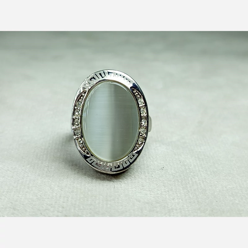 انگشتر استیل زنانه سایز 54 کارشده با نگین چشم گربه طوسی رنگ سنتاتیک