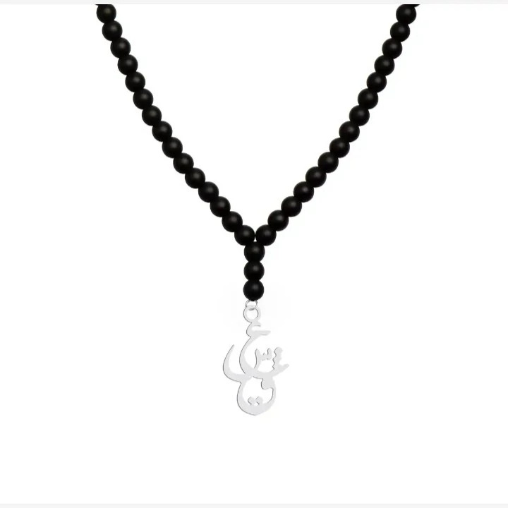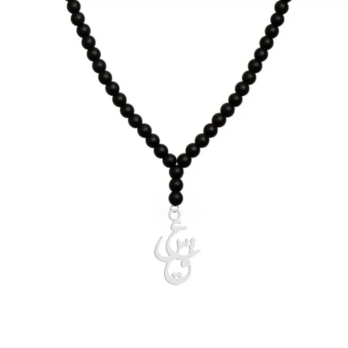 گردنبند نقره مدل عشق کارشده با پلاک نقره عیار 925 و اونیکس سیاه