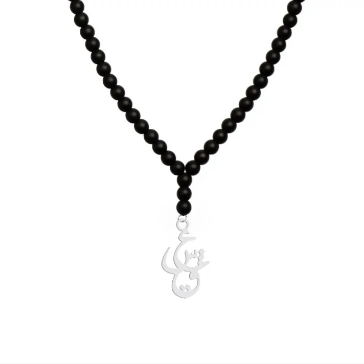 گردنبند نقره مدل عشق کارشده با پلاک نقره عیار 925 و اونیکس سیاه