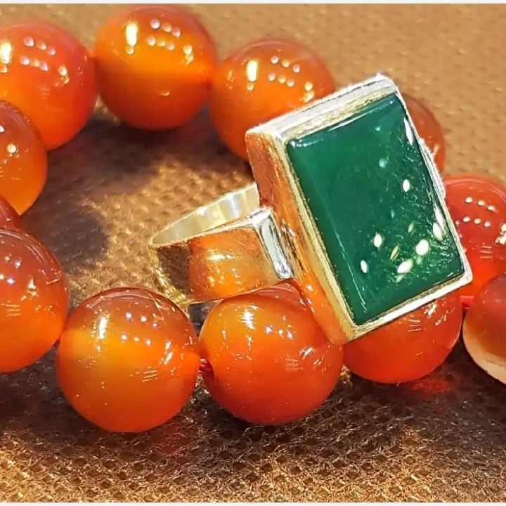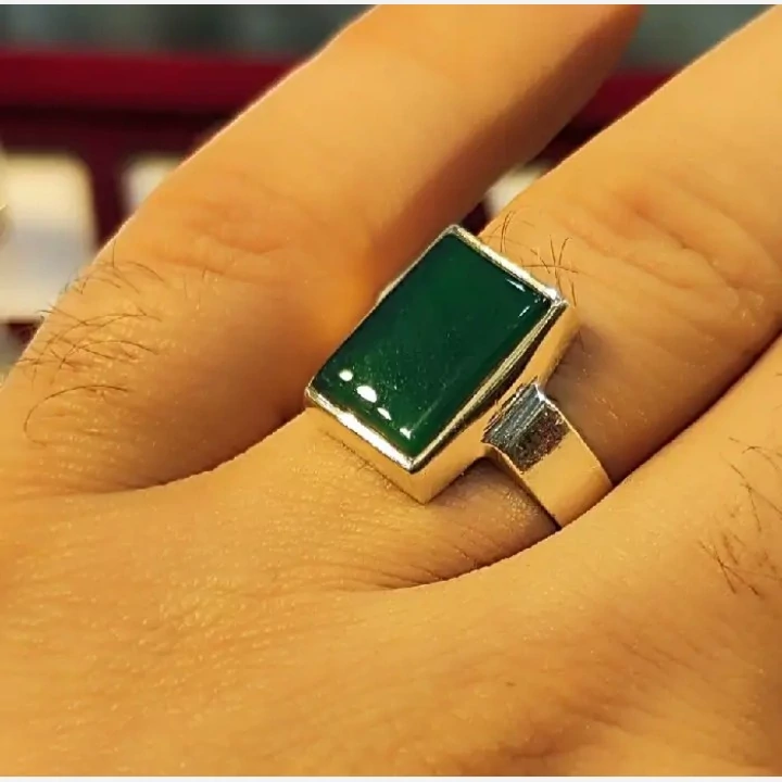 انگشتر مردانه نگین عقیق سبز نقره عیار 925
