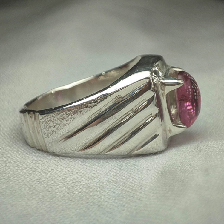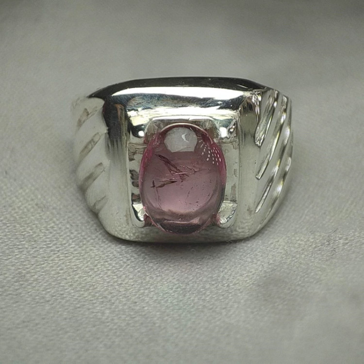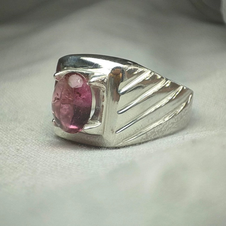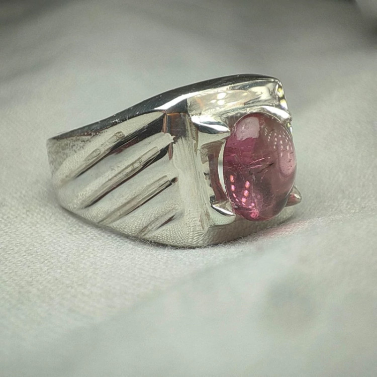 انگشتر نقره مردانه نگین تورمالین صورتی طبیعی