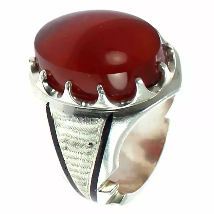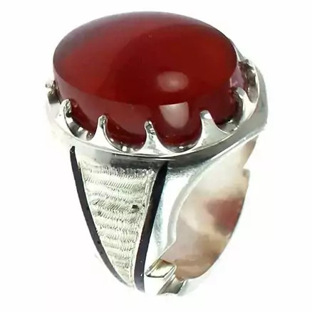 انگشتر مردانه رکاب نقره دست ساز نگین عقیق سرخ