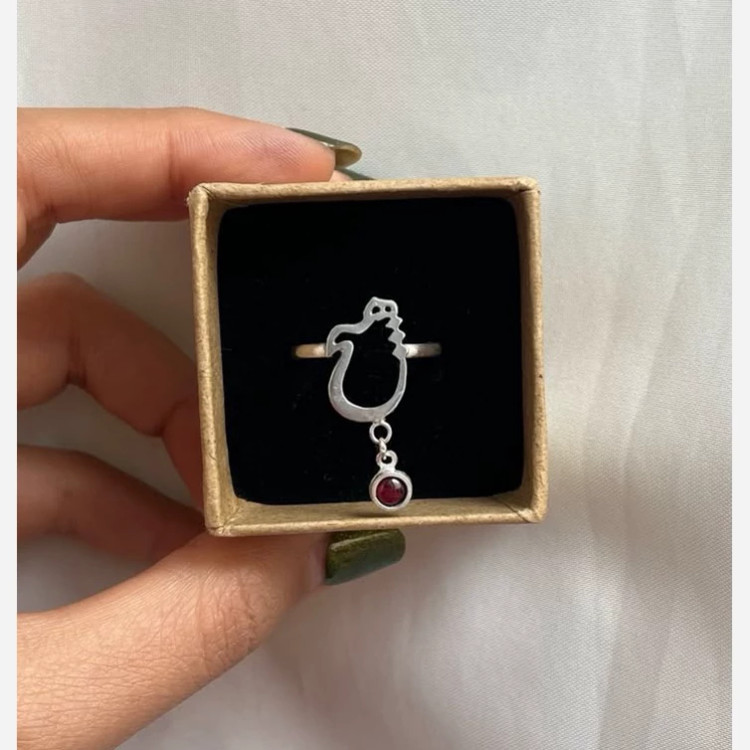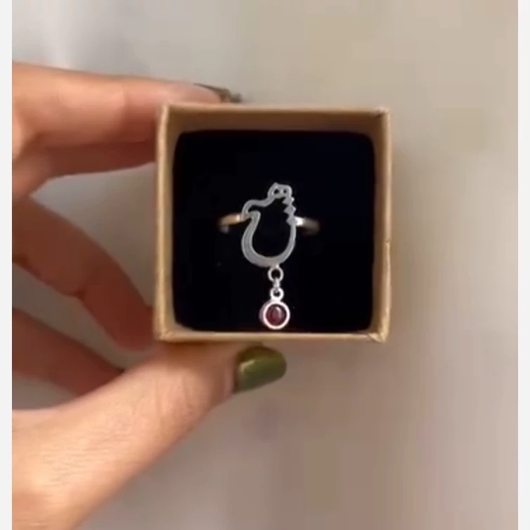 انگشتر نقره زنانه رکاب طرح مدل نوشته هیچ و اویز نقره یاقوت سرخ طبیعی