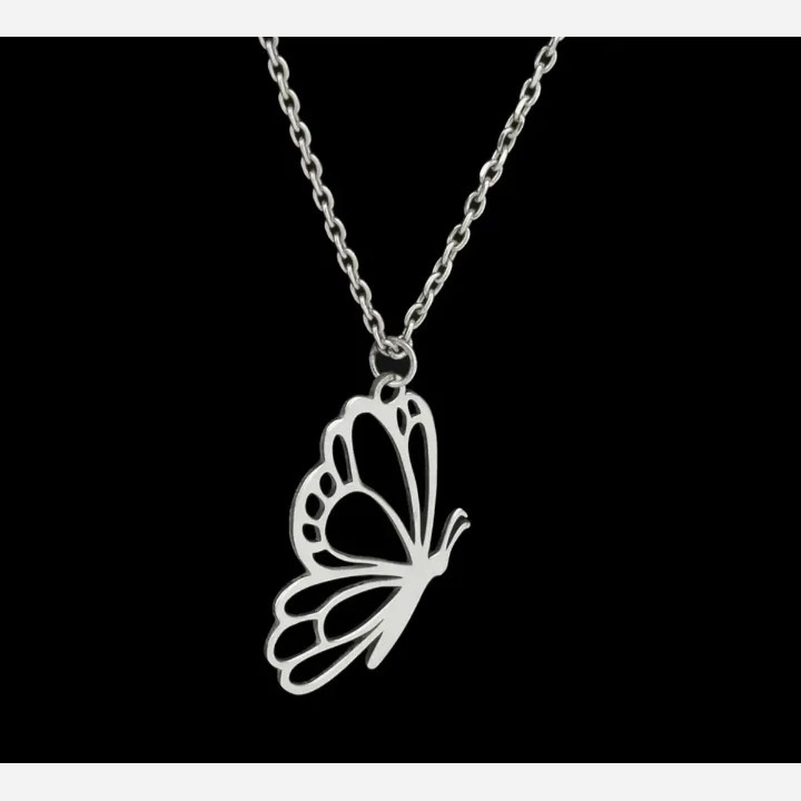 طرح لیزری پروانه از جنس نقره متصل شده به زنجیر نقره عیار 925