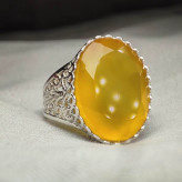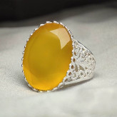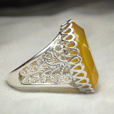 انگشتر نقره زنانه رکاب طرح ملیله با عیار عالی نگین عقیق زرد معدنی