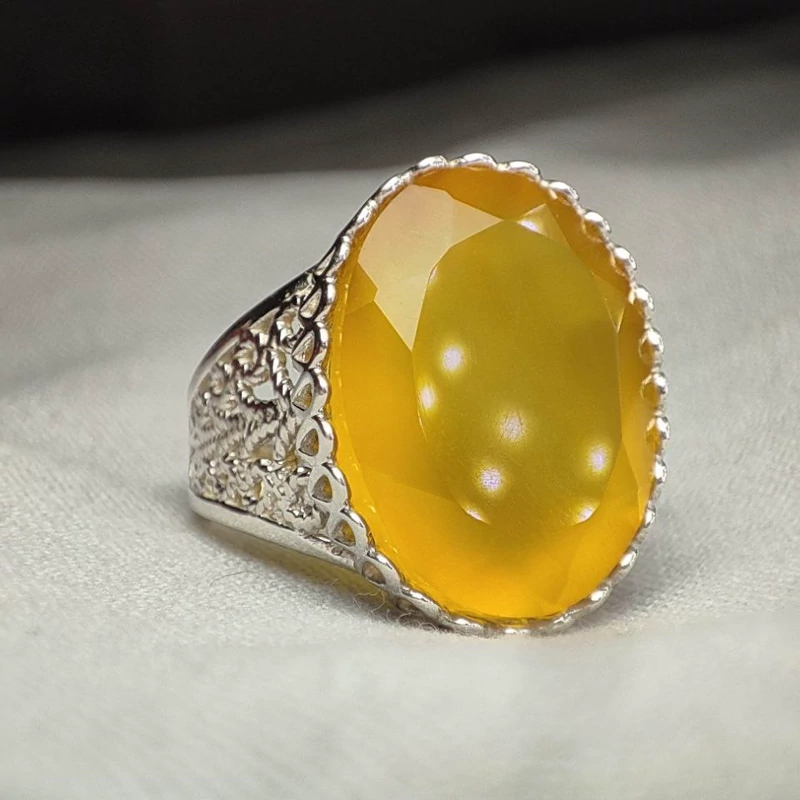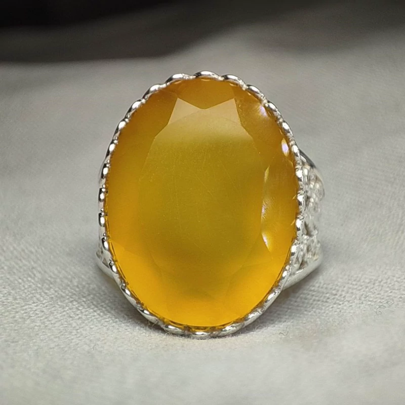 نگین عقیق زرد معدنی رنگ شارژ با تراش جواهری عالی، اوال کات