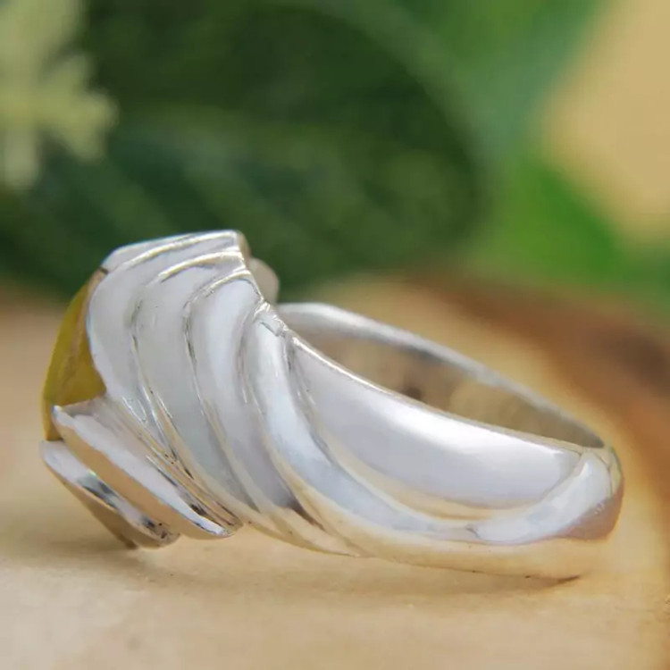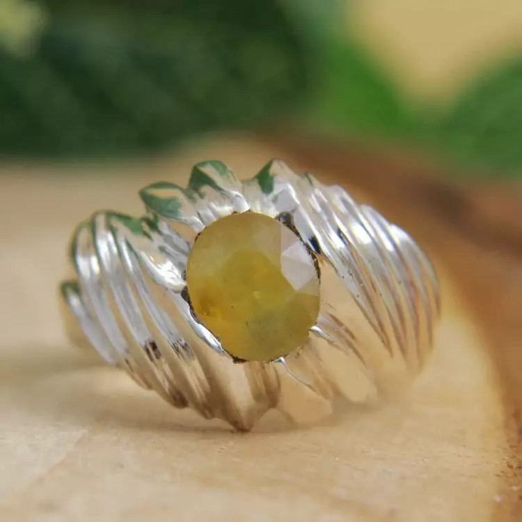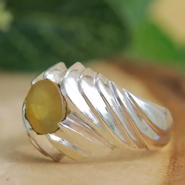 انگشتر یاقوت زرد مردانه رکاب نقره عیار بالا و دست ساز