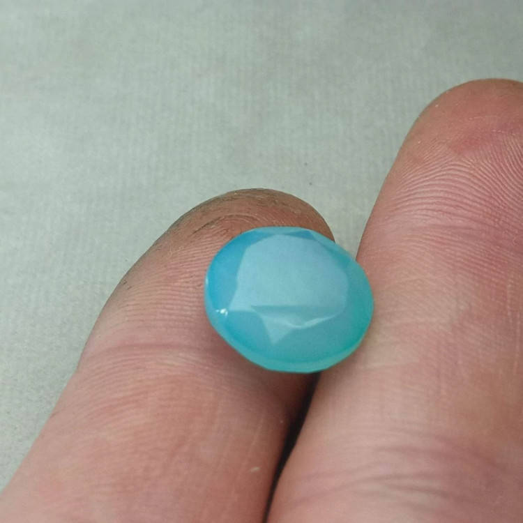 نگین عقیق ابی تراش جواهری رنگ شارژ گرد و بسیار زیبا