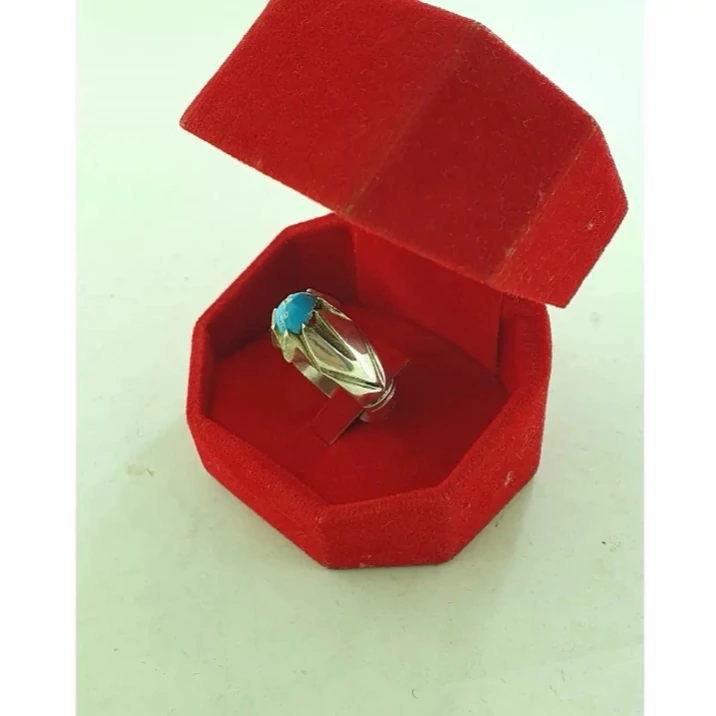 انگشتر فیروزه مردانه بسیار ساده و شیک انگشتر نقره مردانه کارشده با نقره عیار 925 و نگین فیروزه طبیعی و معدنی تراش نگین به شکل بیضی میباشد بسیار شکیل و زیبا مناسب اقایان شیک پسند ساخته شده توسط استاد ماهر در زمینه نقره سازی وزن انگشتر 14 گرم میباشد
