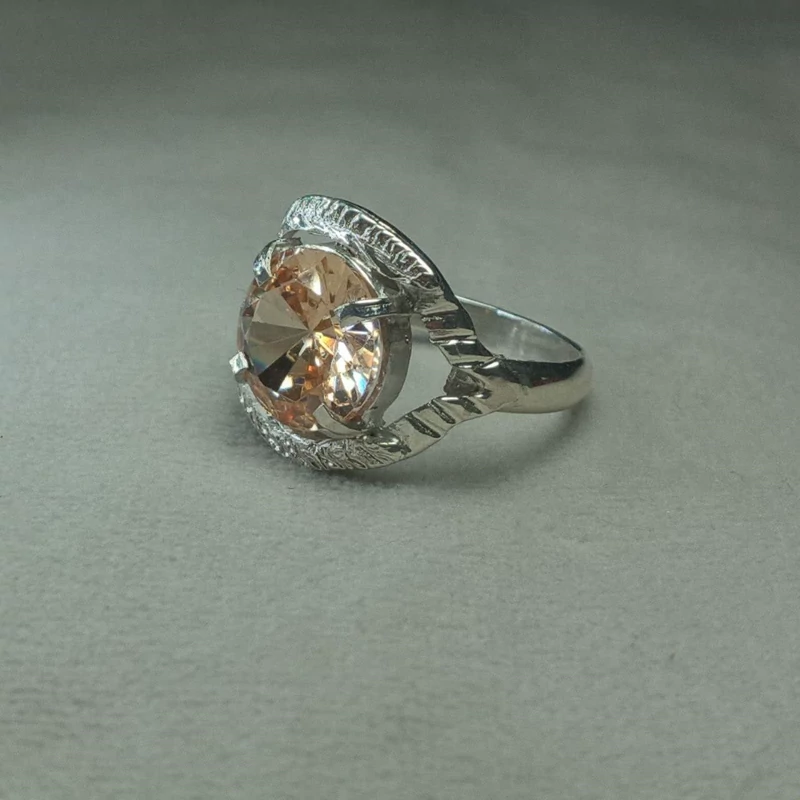 انگشتر نقره زنانه نگین سیترین گلد ازمایشگاهی تراش جواهری کاملا دست ساز کارشده