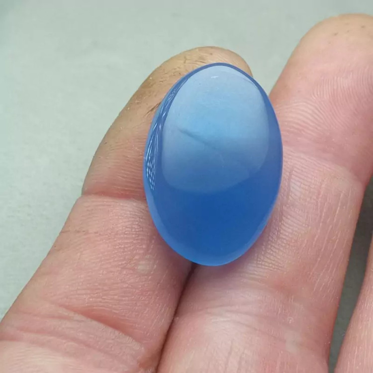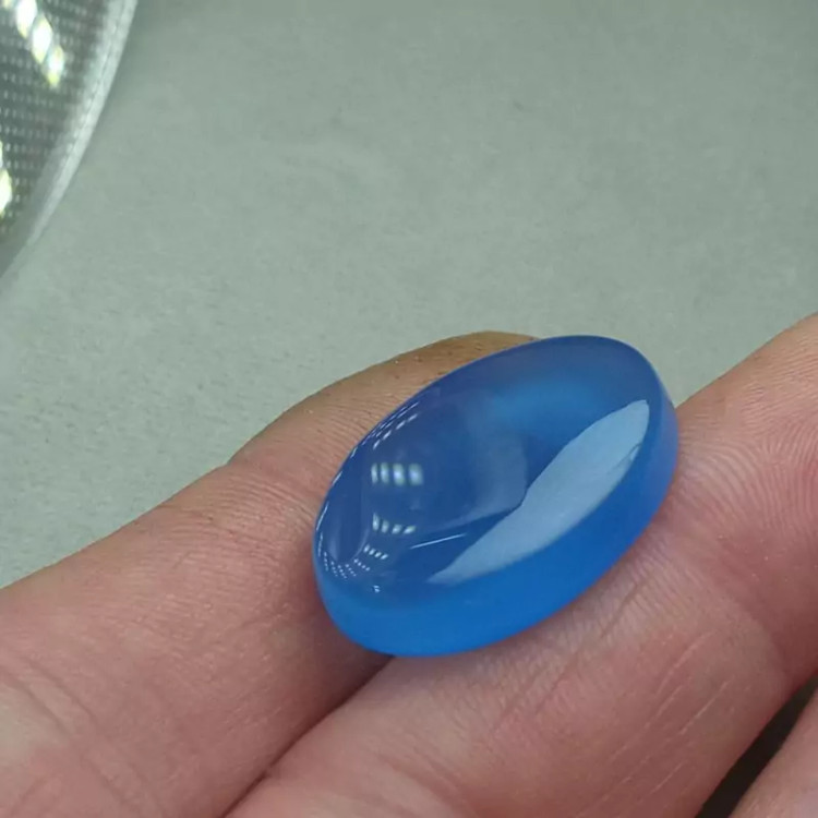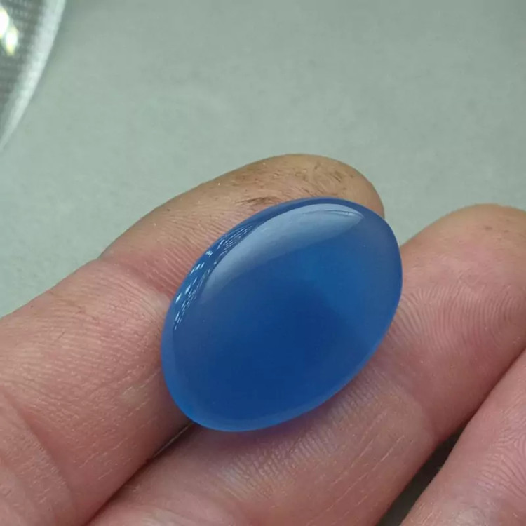 عقیق آبی مسطح تراش تخت بیضی بسیار خوشرنگ و زیبا