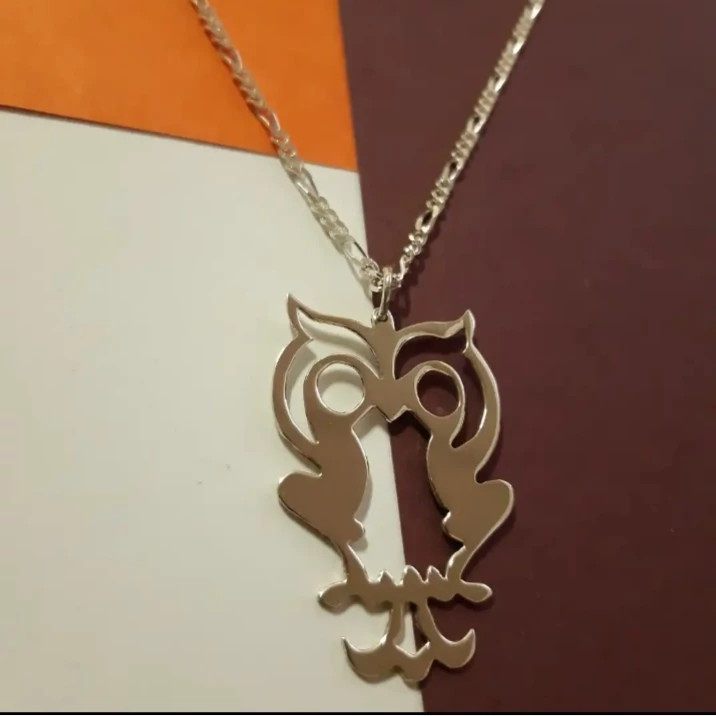 گردنبند نقره طرح جغد کار خاص و جدید همراه با زنجیر نقره عیار 925 مدل فیگارو طرح بسیار زیبا مناسب هدیه به عزیزانتان وزن حدودی گردنبند 6 گرم کار بسیار زیبا جدید و خاص ارسال به تمام نقاط کشور
