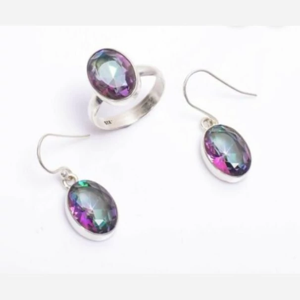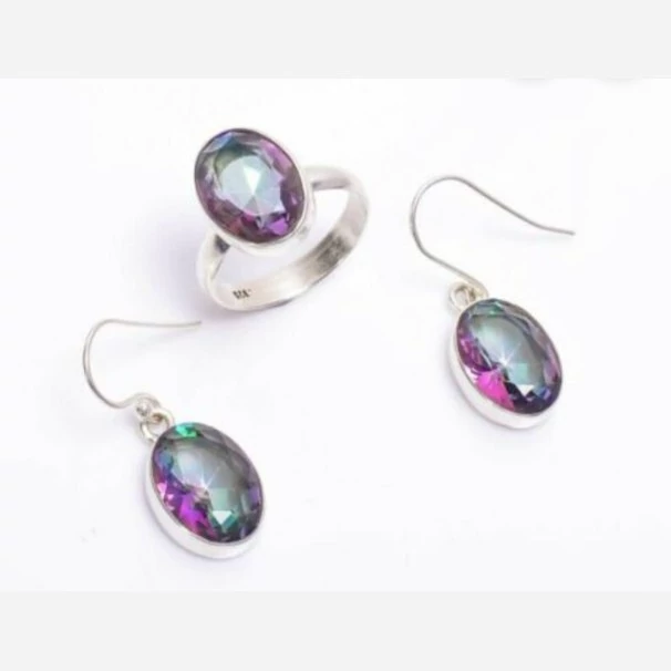 کارشده با نقره عیار 925 و نگین توپاز هفت رنگ آزمایشگاهی