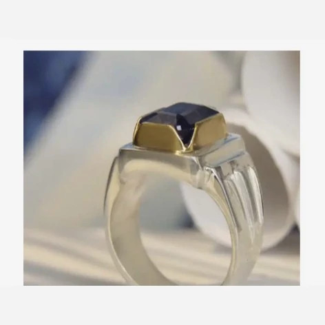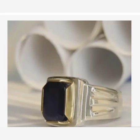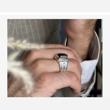 انگشتر یاقوت کبود مردانه رکاب نقره انگشتر نقره مردانه کارشده با نقره عیار 925 و نگین یاقوت کبود کاملا طبیعی و معدنی تراش نگین به شکل امرالد کات جواهری میباشد نگین خانه از جنس برنج کار بسیار شیک مناسب اقایان شیک پسند ساخته شده توسط استاد ماهر در زمینه نقره سازی وزن انگشتر 21 گرم میباشد