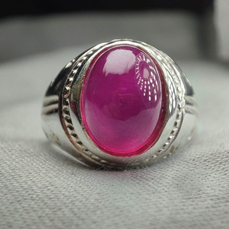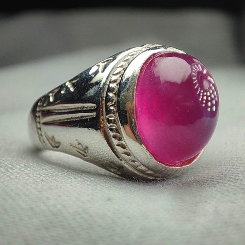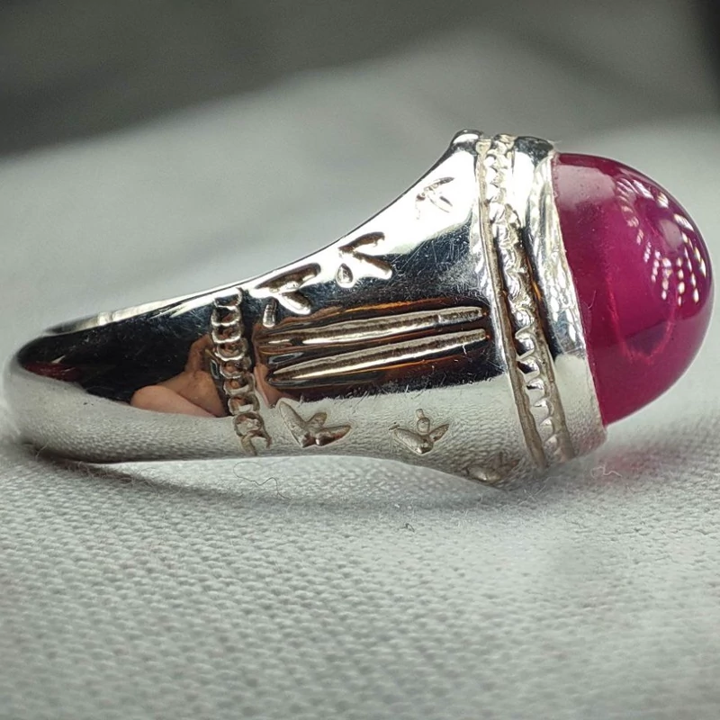 انگشتر نقره مردانه رکاب طرح سید نگین یاقوت استار معدنی فرایندی