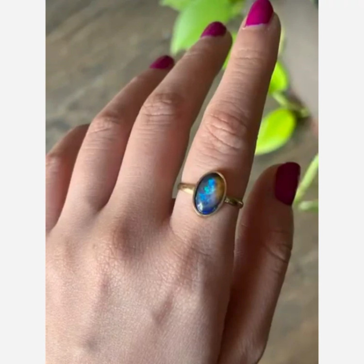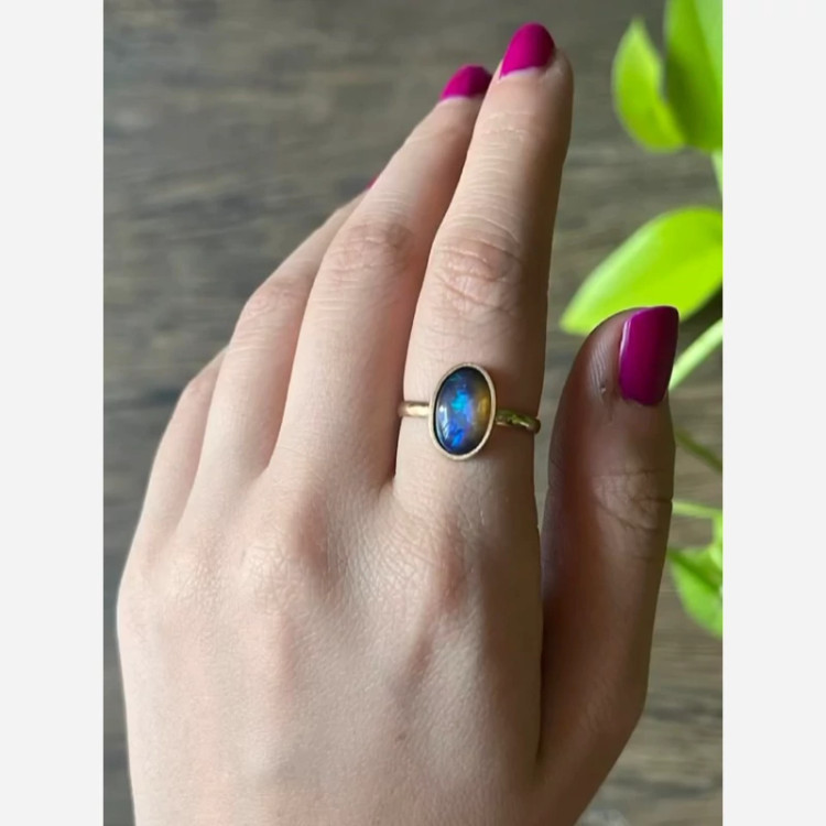 انگشتر نقره زنانه نگین لابرادوریت طبیعی