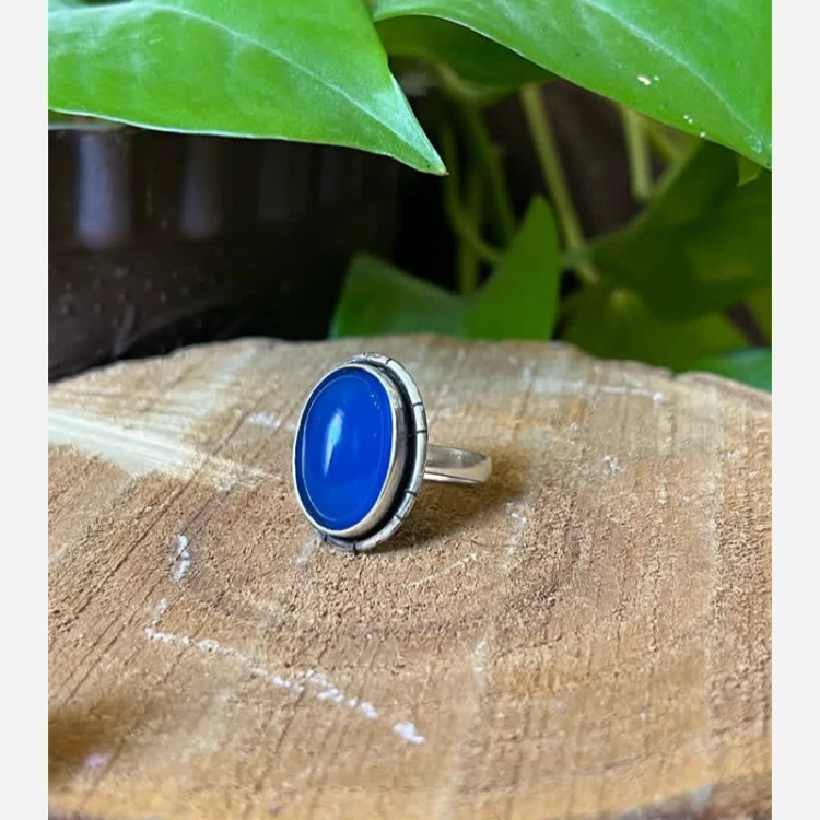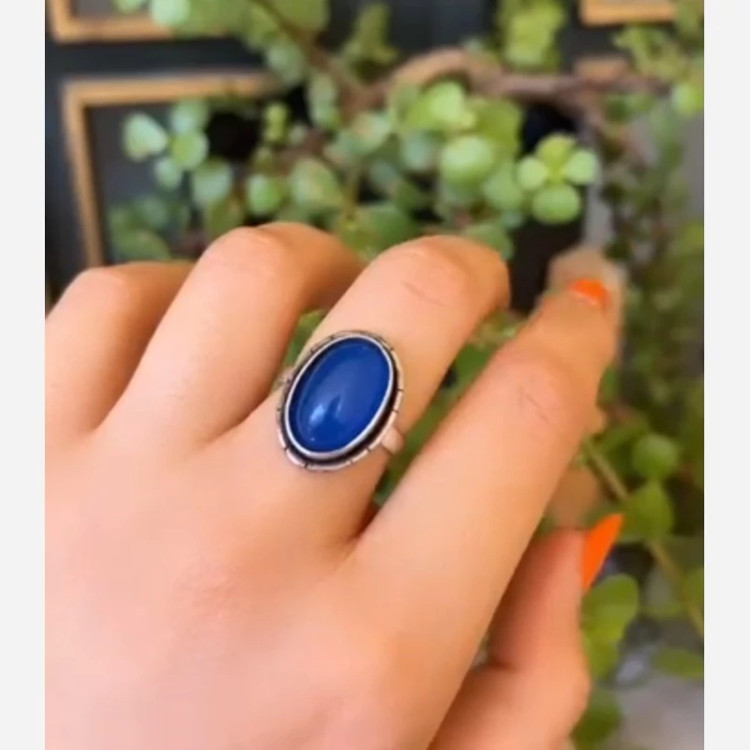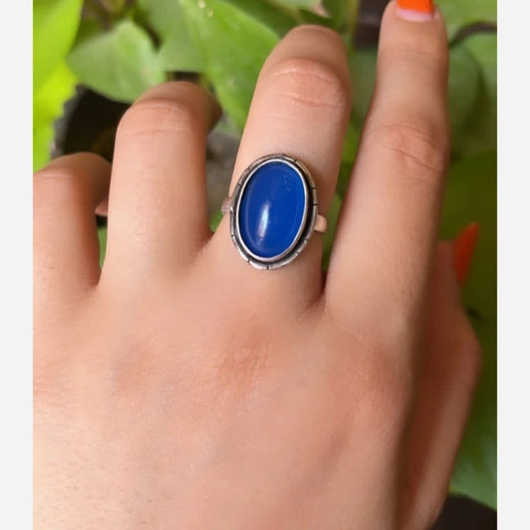 انگشتر عقیق آبی زنانه رکاب نقره دست ساز