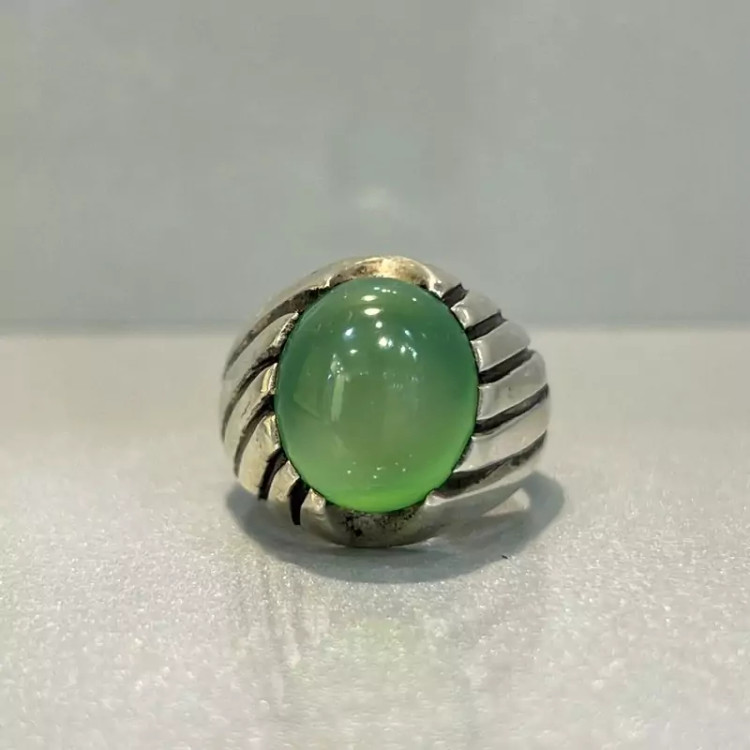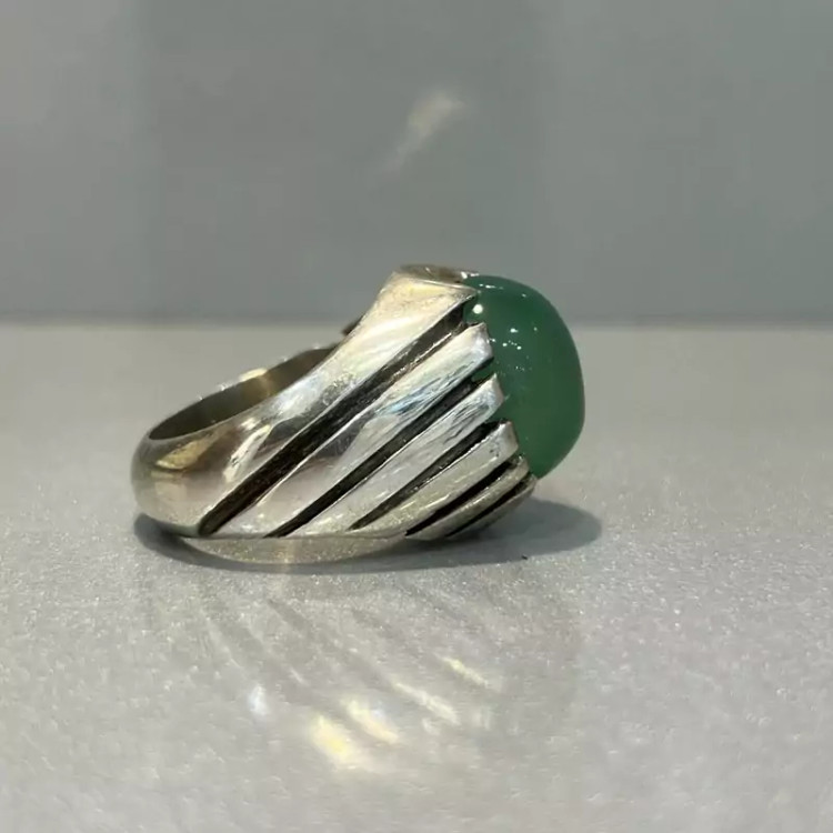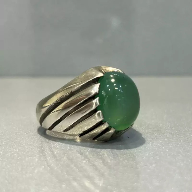 انگشتر مردانه دست شاز کارشده با نگین عقیق سبز و نقره عیاربالا