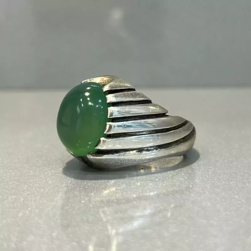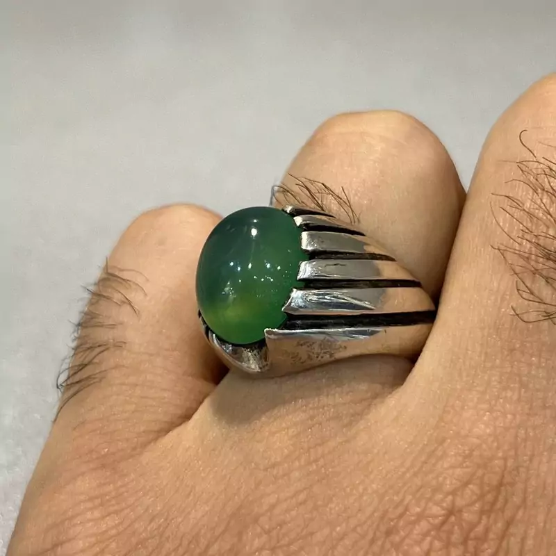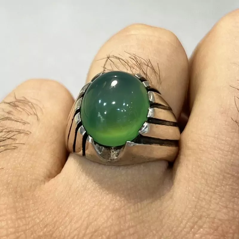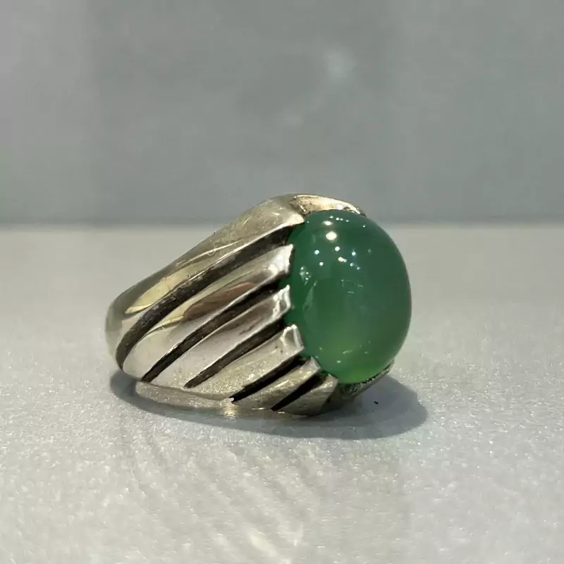 انگشتر مردانه دست شاز کارشده با نگین عقیق سبز و نقره عیاربالا