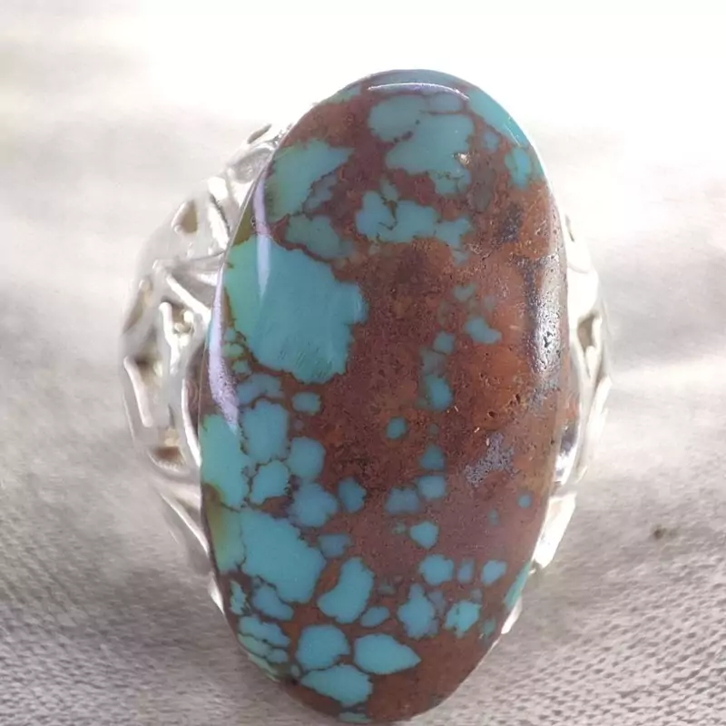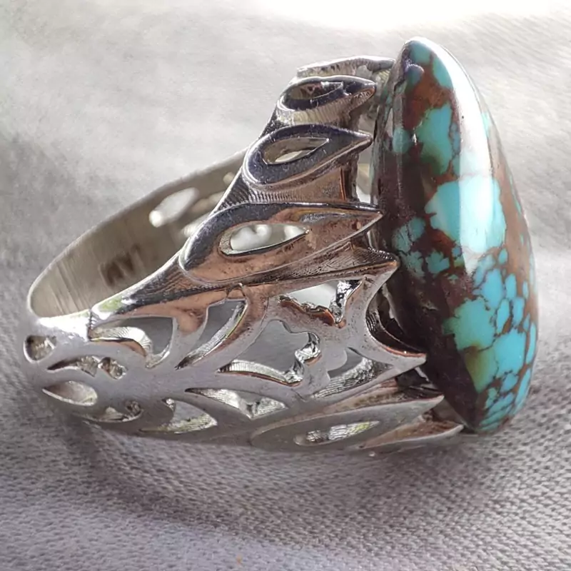 نگین فیروزه معدنی عنکبوتی،کلوخه طبیعی از معادن نیشابور، فیروزه گوشتی و دامله،ارتفاع دار،فیروزه درجه یک،سبز ابی و چشم نواز