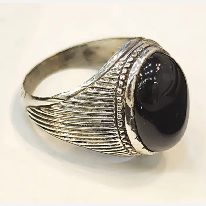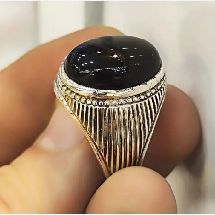 انگشتر اونیکس ازمایشگاهی مردانه دست ساز کارشده با نقره عیار 925