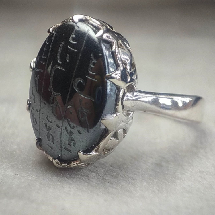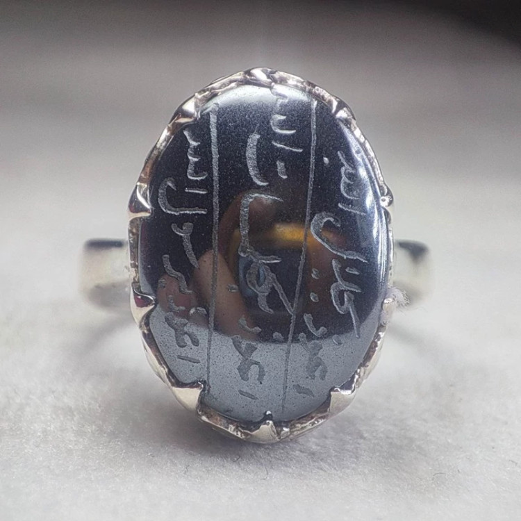 انگشتر حدید زنانه نقره حکاکی شده دعای هفت جلاله بر روی سنگ انگشتر