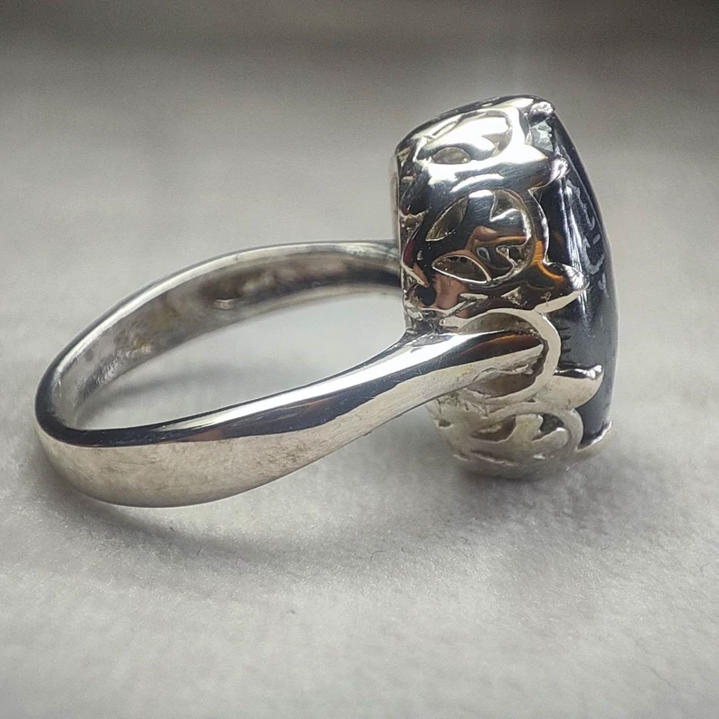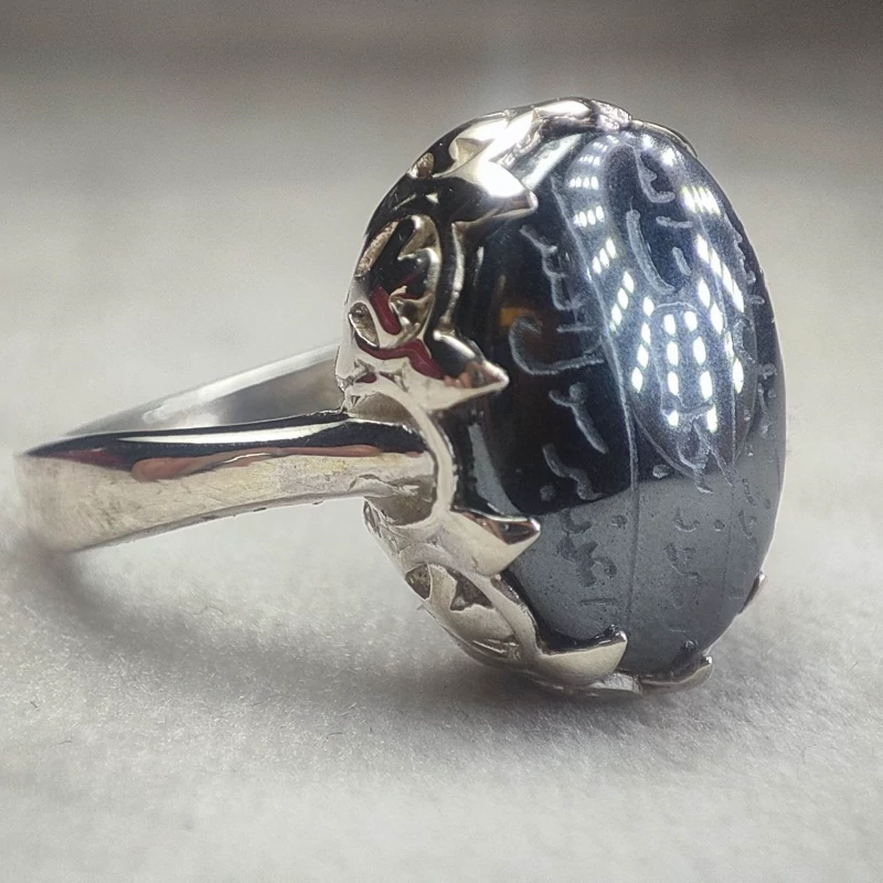 انگشتر حدید زنانه نقره حکاکی شده دعای هفت جلاله بر روی سنگ انگشتر