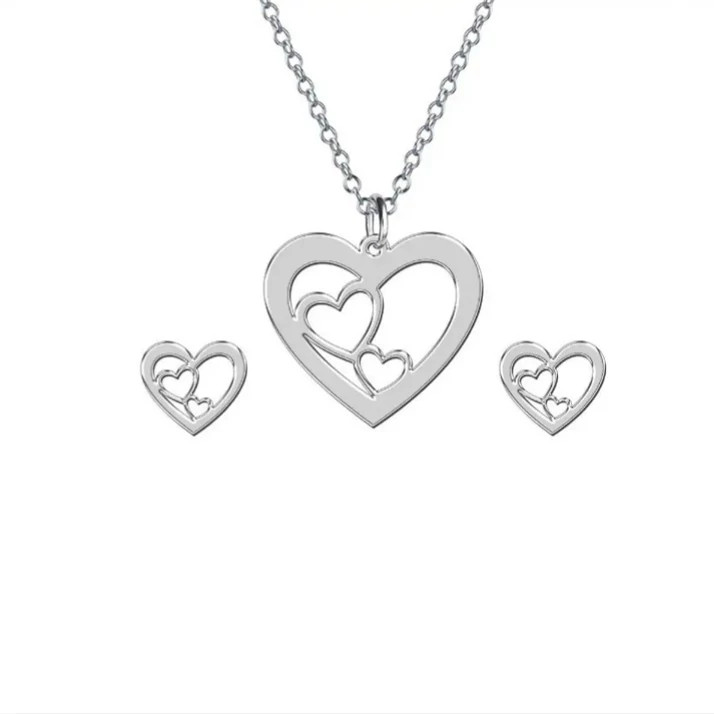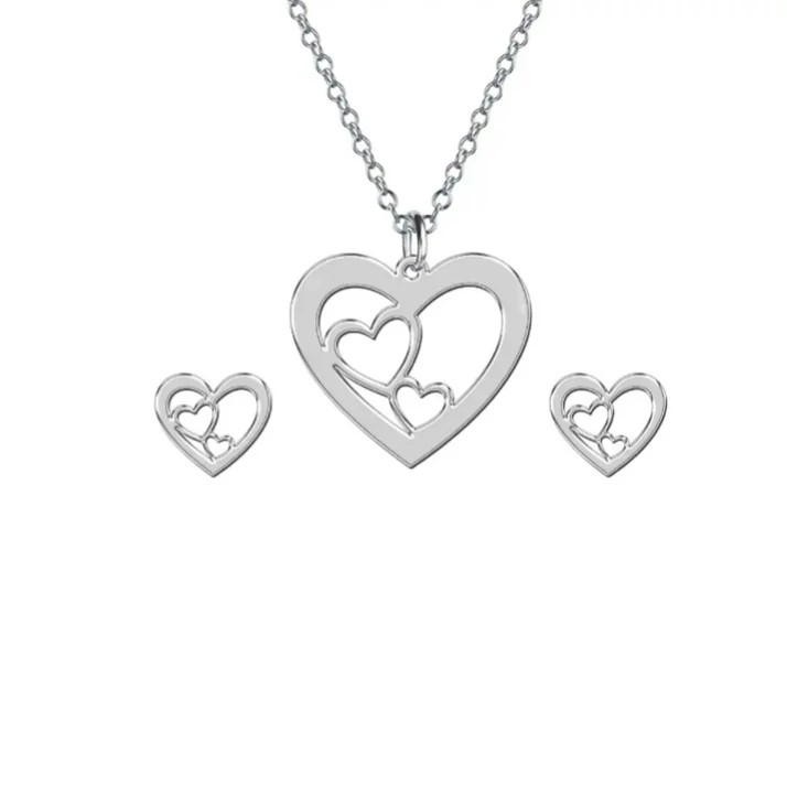 نیم ست نقره زنانه طرح دو قلب در یک قلب