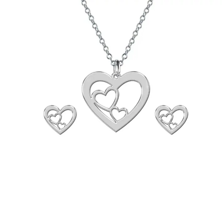 نیم ست نقره زنانه طرح دو قلب در یک قلب