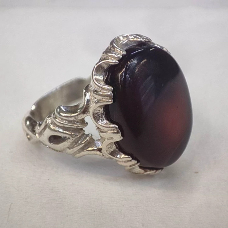 انگشتر مردانه نقره نگین عقیق سرخ شفت العبد یمنی